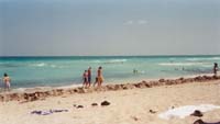 Upon returning to dry land, Kurt and I head for the Cuban restaurant to squelch our hunger. As an appetizer, we request an order of yucca – a food new to both of us. Almost unsurprisingly, it doesn’t really have too much of a flavor. In fact, if not for the breading, it would have almost no flavor at all. Kurt orders a meat platter and I order Calamari enchiladas. I have to admit, I am a little surprised when my dish shows up without any tortillas at all. Oh yeah, and both dishes are served with plantains. It appears that yucca and plantains are staples of the Cuban cuisine. In all, the food is very tasty and filling. After a few more drinks, Kurt and I head back to South Beach to call it a night. (To Day 3)