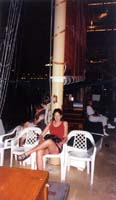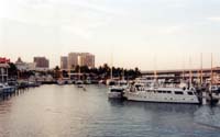 After locating the K-Mart and purchasing our needed goods, Kurt and I wind our way back to this area – indicated on the map as Bayside Marketplace and Bayfront Park. Upon investigation, we discover that Bayfront Park is the home of several statues by sculptor Isamu Noguchi, including a memorial to the Space Shuttle Challenger astronauts. We follow the action and noise over to Bayside Marketplace, which turns out to be a large collection of restaurants, bars, trendy shops and tourist attractions – all built surrounding the private marina of Biscayne Bay (the body of water between South Beach and Miami). After only a few minutes of traipsing around, Kurt and I know that we could spend the evening here, so we move the RAV4 to a ‘safer’ parking space (one that wasn’t guarded by a meter). We quickly find an intriguing restaurant for dinner (serving Cuban cuisine), a must-do boat ride on a topsail schooner, and a bar serving Rum Runners – a fabulous frozen drink that embodies all I imagine in a tropical drink. After a few drinks, we board the ‘Heritage of Miami II’. Unfortunately, the schooner does not hoist its sails but rather navigates under motor power. Even though that was disappointing, we are impressed with the view of the nighttime city skyline from the water.
