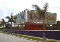 On our drive into the city, we pass the Port of Miami and witness the gargantuan cruise ships docked there. The pure size of these ships is just amazing! We also spot an interesting-looking area between downtown and the Port that looks as though it might be worthy of further investigation. Not too much later, we spot a couple of extremely unique buildings. The first is a sizable cube supported only by a smaller inner column. The walls of this cube are composed entirely of stained glass, from floor to roof. Keep in mind this is definitely a lived-in building – it’s large enough to house several inner offices – yet there appears to be no way to get in or out of the building. The second structure is a regular-looking building except that two sides of it are plated in ceramic tile. There are no obvious signs outside these structures, but after a little searching we do learn that the buildings house the North American Bacardi Museum. Too bad it's closed, free samples are always enjoyable.