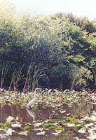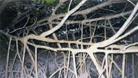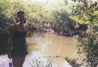 Once at our campground, which is about 30 miles into the Park, we can no longer feel the effects of civilization just a short distance away. We find our designated camping area and pick a spot to pitch the tent only 20 or so yards from the edge of the Florida Bay. Racing against the twilight, we set up the tent, then head out to find a good hiking trail. We embark on one called the Coastal Prairie Trail that looks as though it should lead right along the edge of the water. After about a half mile, we do manage to see the water through a thick grove of trees. Kurt and I pick our way through these trees and attempt to get as close to the water as possible. We can get as close as about 5 feet to the water before we discover that the roots of the trees (which are partly above ground and very gnarled-looking) are way too thick for us to go any farther. We continue on down the path, with the trees still separating us from the water. We finally round a bend and are rewarded with a decent view of the bay. It is obvious by this time that sandy beaches just don’t exist in the Everglades: the water’s edge consists of thick mud and a nasty smell. After snapping a few pictures, Kurt and I begin down the path once again. By this time, I just cannot get away from the mosquitoes! They follow me everywhere by the dozen and I even slathered myself with repellent prior to starting the hike. Eventually they start bugging Kurt too, and he votes to head back to the Toyota. It’s getting dark and the trail doesn’t promise much of a water view anytime soon.